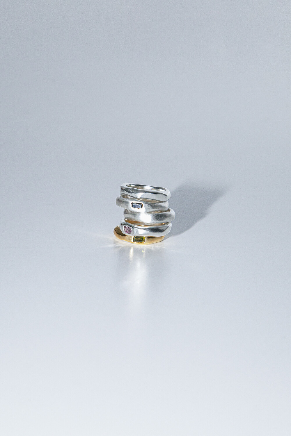 일정하지 않은 각과 독특한 깎임이 조화를 이루는 매력적인 반지 입니다.
